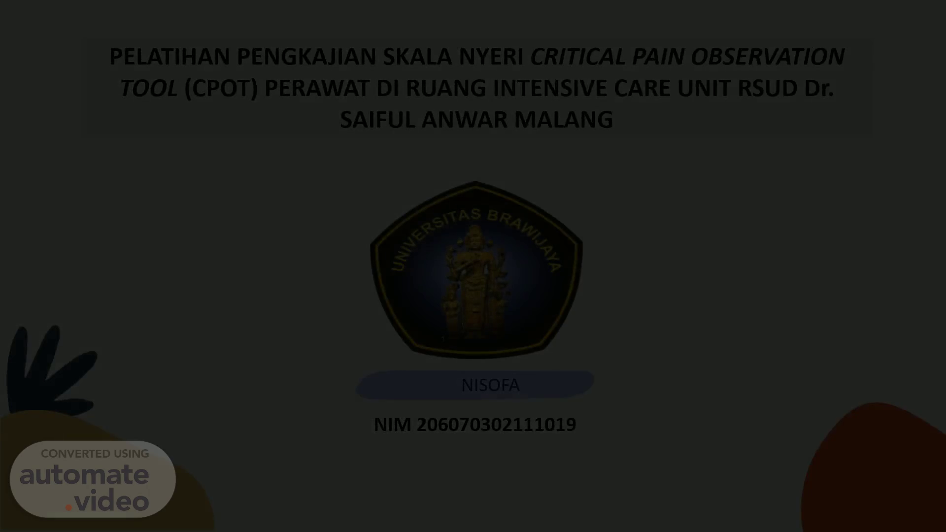 sog. NISOFA. PELATIHAN PENGKAJIAN SKALA NYERI CRITICAL PAIN OBSERVATION TOOL (CPOT) PERAWAT DI RUANG INTENSIVE CARE UNIT RSUD Dr. SAIFUL ANWAR MALANG.