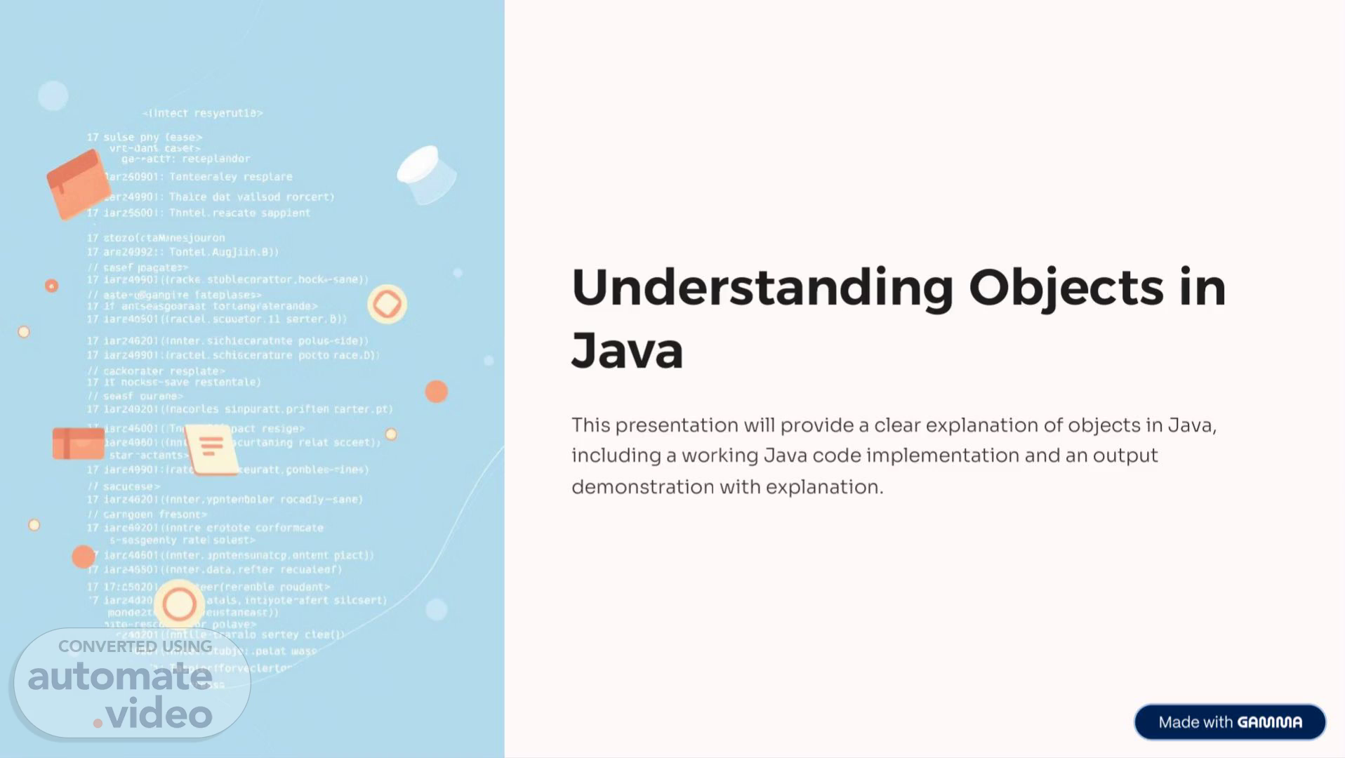 [Audio] Understanding Objects in Java This presentation will provide a clear explanation of objects in Java, including a working Java code implementation and an output demonstration with explanation..