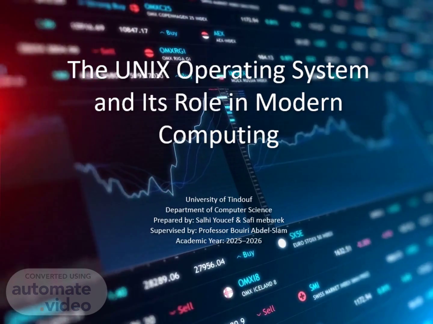 [Audio] The Department of Computer Science at the University of Tindouf has taken the initiative to study the UNIX Operating System for the academic year 2025-2026. As technology plays a crucial role in our modern world, it is important to have a thorough understanding of the foundation of computing systems. Slide number 2 of our presentation introduces us to the core features of UNIX, a powerful and versatile multiuser, multitasking operating system developed in the 1970s at Bell Labs. Its impact on modern operating system designs is significant, as it has influenced many major OS designs in use today. The ability to have multiple users accessing and using the system simultaneously makes UNIX an ideal choice for organizations and businesses. Its multitasking capabilities also make it highly efficient and productive, allowing for multiple tasks to be performed at once. The longevity and reliability of UNIX, developed at Bell Labs, is a testament to its enduring quality and its strong foundation for modern operating systems. In this presentation, the Department of Computer Science at the University of Tindouf will delve deeper into the various aspects of UNIX and its significance in the world of computing. Our aim is to provide a thorough understanding of this essential operating system and its lasting impact on the technological landscape. Let us now move on to slide number 3, where we will discuss its key components in more detail..