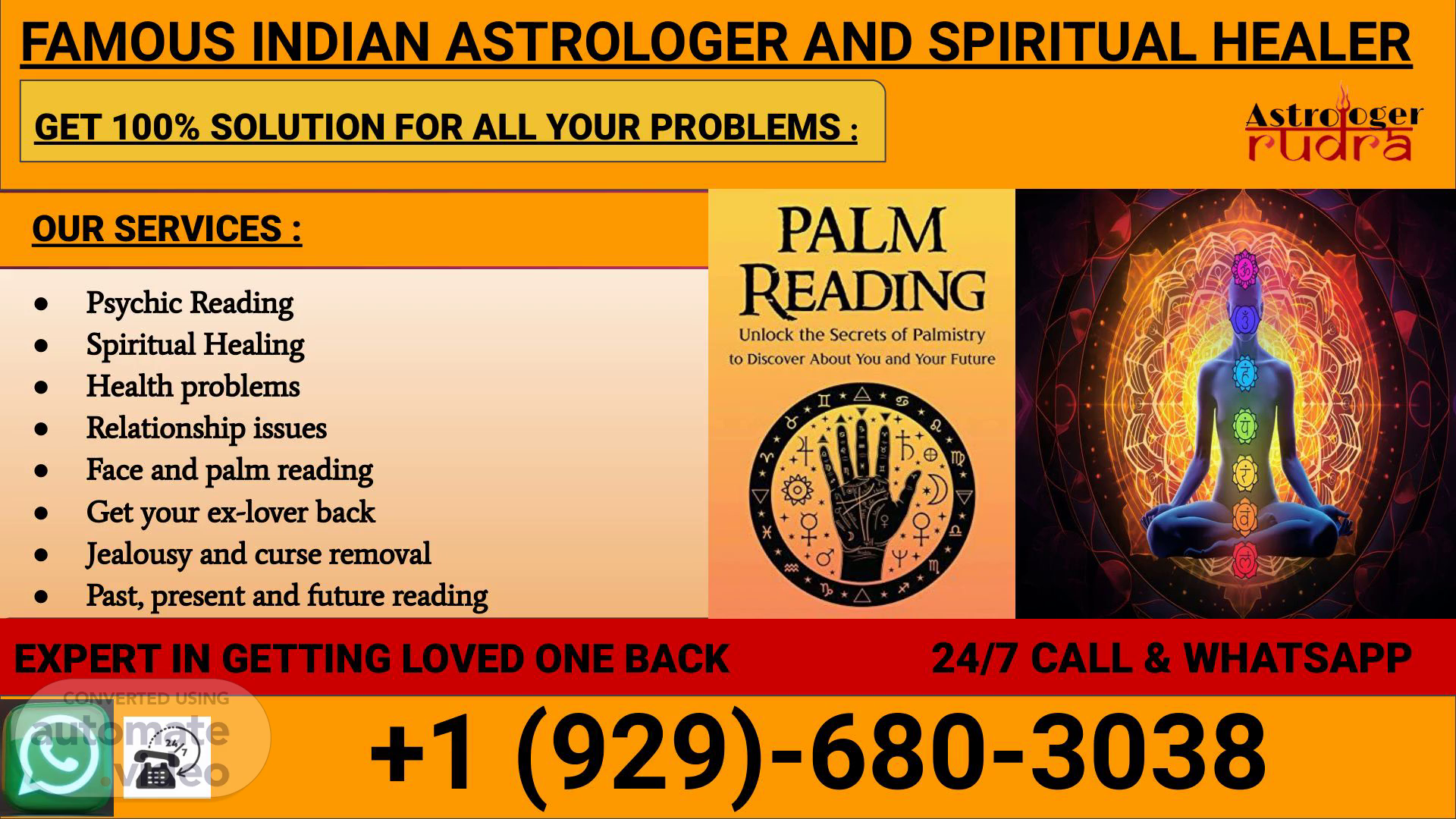 ● FAMOUS INDIAN ASTROLOGER AND SPIRITUAL HEALER GET 100% SOLUTION FOR ALL YOUR PROBLEMS : OUR SERVICES : ● Psychic Reading ● Spiritual Healing ● Health problems ● Relationship issues ● Face and palm reading ● Get your ex-lover back ● Jealousy and curse removal ● Past, present and future reading EXPERT IN GETTING LOVED ONE BACK 24/7 CALL & WHATSAPP +1 (929)-680-3038.