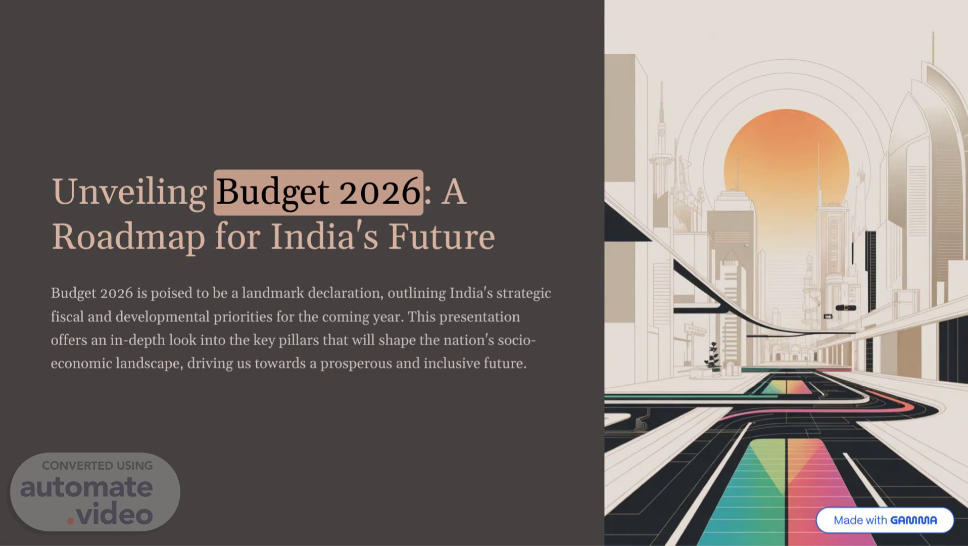 [Audio] Unveiling Budget 2026: A Roadmap for India's Future Budget 2026 is poised to be a landmark declaration, outlining India's strategic fiscal and developmental priorities for the coming year. This presentation offers an in-depth look into the key pillars that will shape the nation's socioeconomic landscape, driving us towards a prosperous and inclusive future..