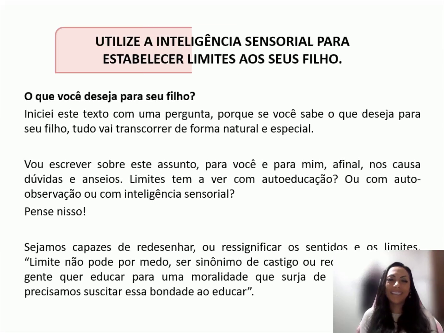 Utilize a Inteligência Sensorial para estabelecer limites aos seus filho. O que você deseja para seu filho? Iniciei este texto com uma pergunta, porque se você sabe o que deseja para seu filho, tudo vai transcorrer de forma natural e especial. Vou escrever sobre este assunto, para você e para mim, afinal, nos causa dúvidas e anseios. Limites tem a ver com autoeducação? Ou com auto-observação ou com inteligência sensorial? Pense nisso! Sejamos capazes de redesenhar, ou ressignificar os sentidos e os limites. “Limite não pode por medo, ser sinônimo de castigo ou recompensa”. “Se a gente quer educar para uma moralidade que surja de dentro pra fora, precisamos suscitar essa bondade ao educar”..