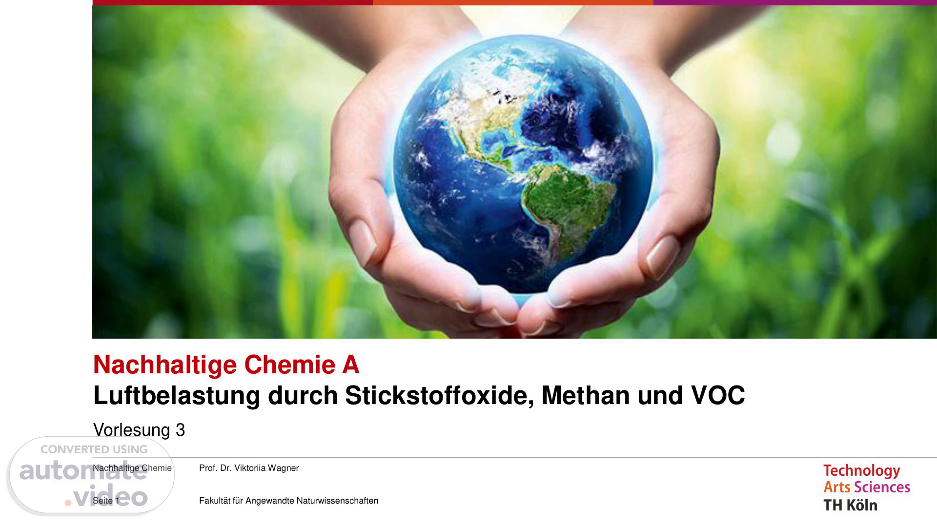 Prof. Dr. Viktoriia Wagner Fakultät für Angewandte Naturwissenschaften Nachhaltige Chemie A Luftbelastung durch Stickstoffoxide, Methan und VOC Vorlesung 3 Nachhaltige Chemie Seite 1.