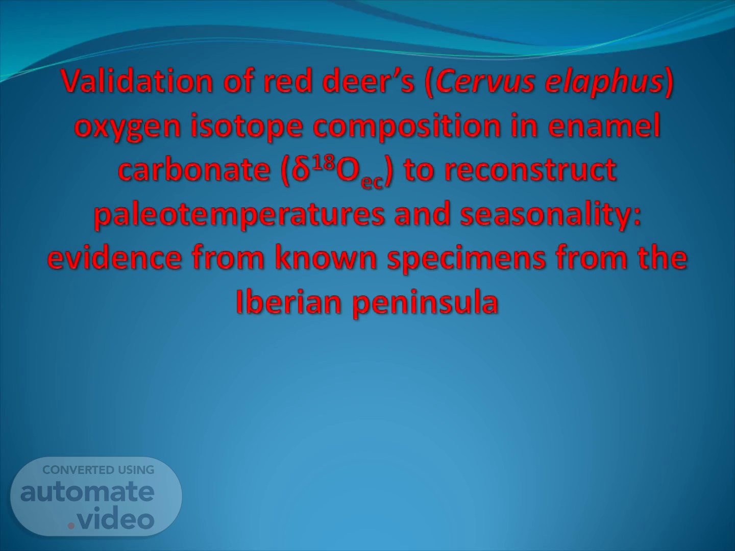 abstract. Why red deer ? Extant species with a wide geographic /temporal distribution Homeotherm and sedentary D’Angela and Longinelli 1990, Fricke et al. 1998, Stevens et al. 2011 provide a good expectations for its applicability.