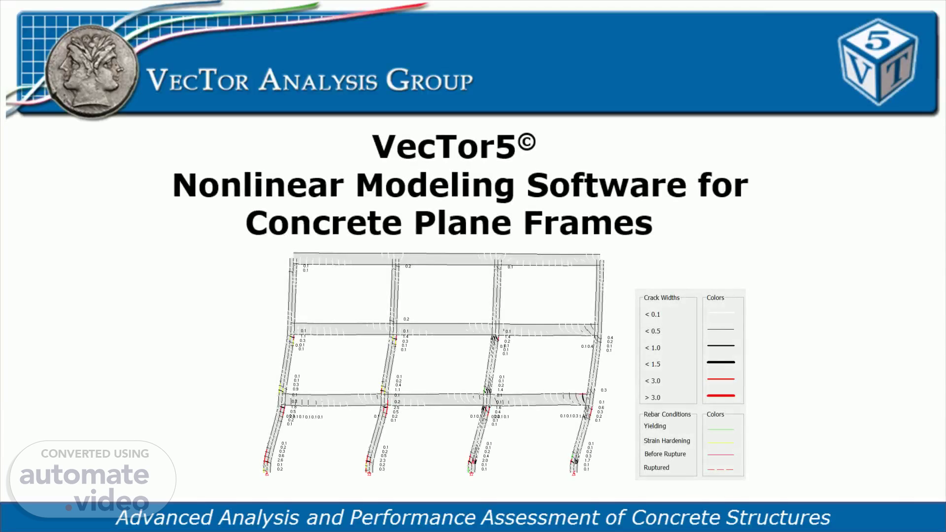 [Audio] VecTor5 is a nonlinear modeling software developed specifically for concrete frames. It provides: a simple yet accurate modeling process, concrete-specific, default material models, and 25 years of proven track record. VecTor5 is a great addition to any consulting engineering office involved in frame analysis..