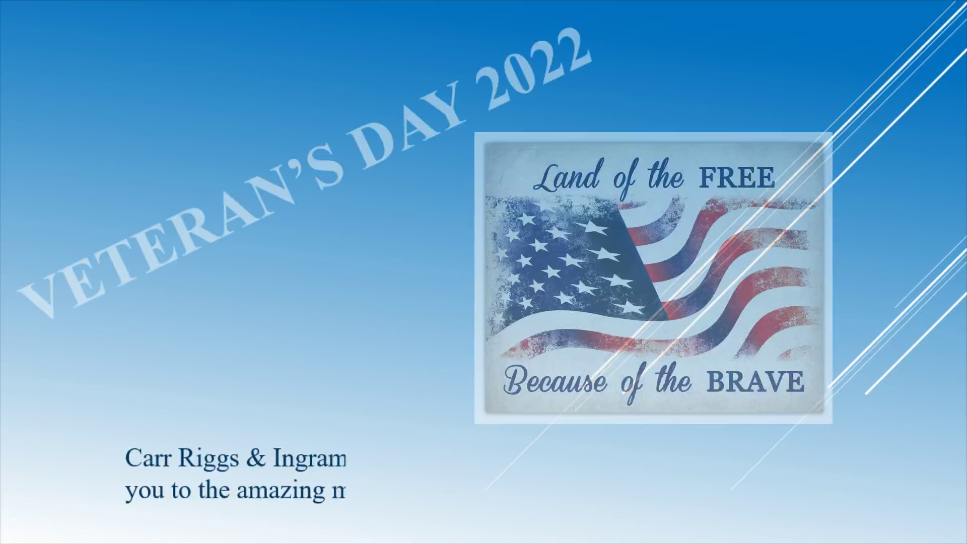 Veteran’s Day 2022. Carr Riggs & Ingram, LLC would like to pay tribute and say thank you to the amazing men & women in our extended CRI family..