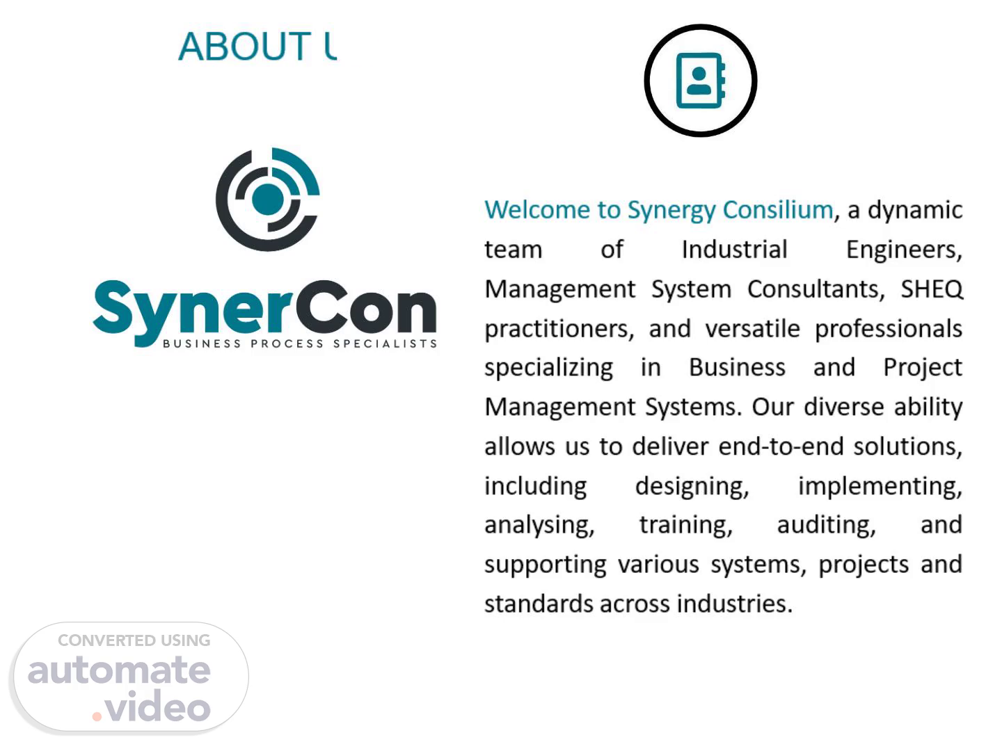 WHY CHOOSE SYNERGY CONSILIUM? We don’t just help you tick ISO boxes — we help you build resilient, compliant, and growth-oriented operations. Synergy Consilium is trusted across industries for our integrated approach and the power of our iQuotient EMS platform. We offer affordable solutions designed specifically to meet the requirements of your organization.