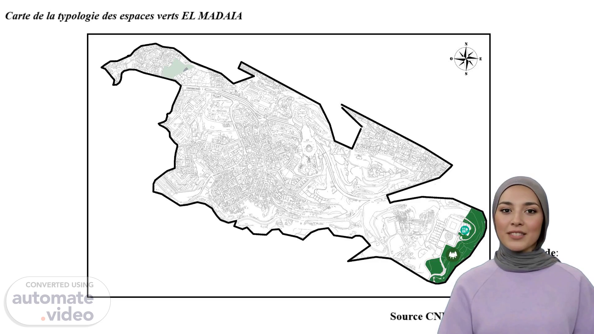 [Virtual Presenter] Carte de la typologie des espaces verts EL madaia Légende: Source CNERU 2020.