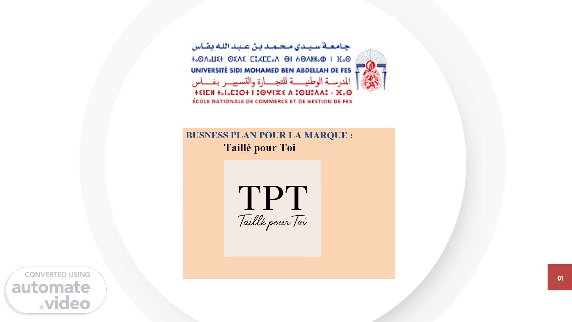 La Solution. Nom commercial : Taillé pour Toi (TPT) Ville : Fès Secteur : Mode féminine (hijabs modernes + petites tailles) Forme juridique : SARL.