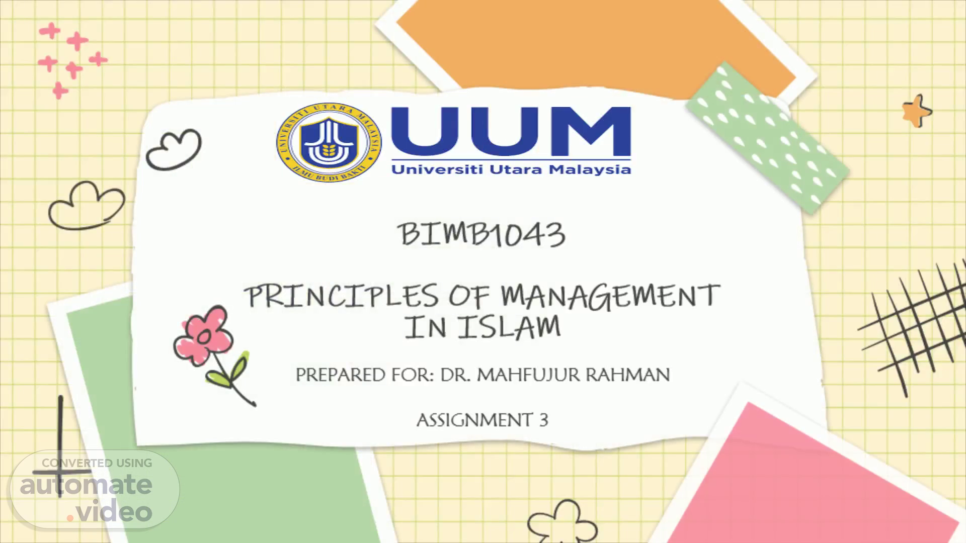 BIMB1043 PRINCIPLES OF MANAGEMENT IN ISLAM. PREPARED FOR: DR. MAHFUJUR RAHMAN A SSIGNMENT 3.