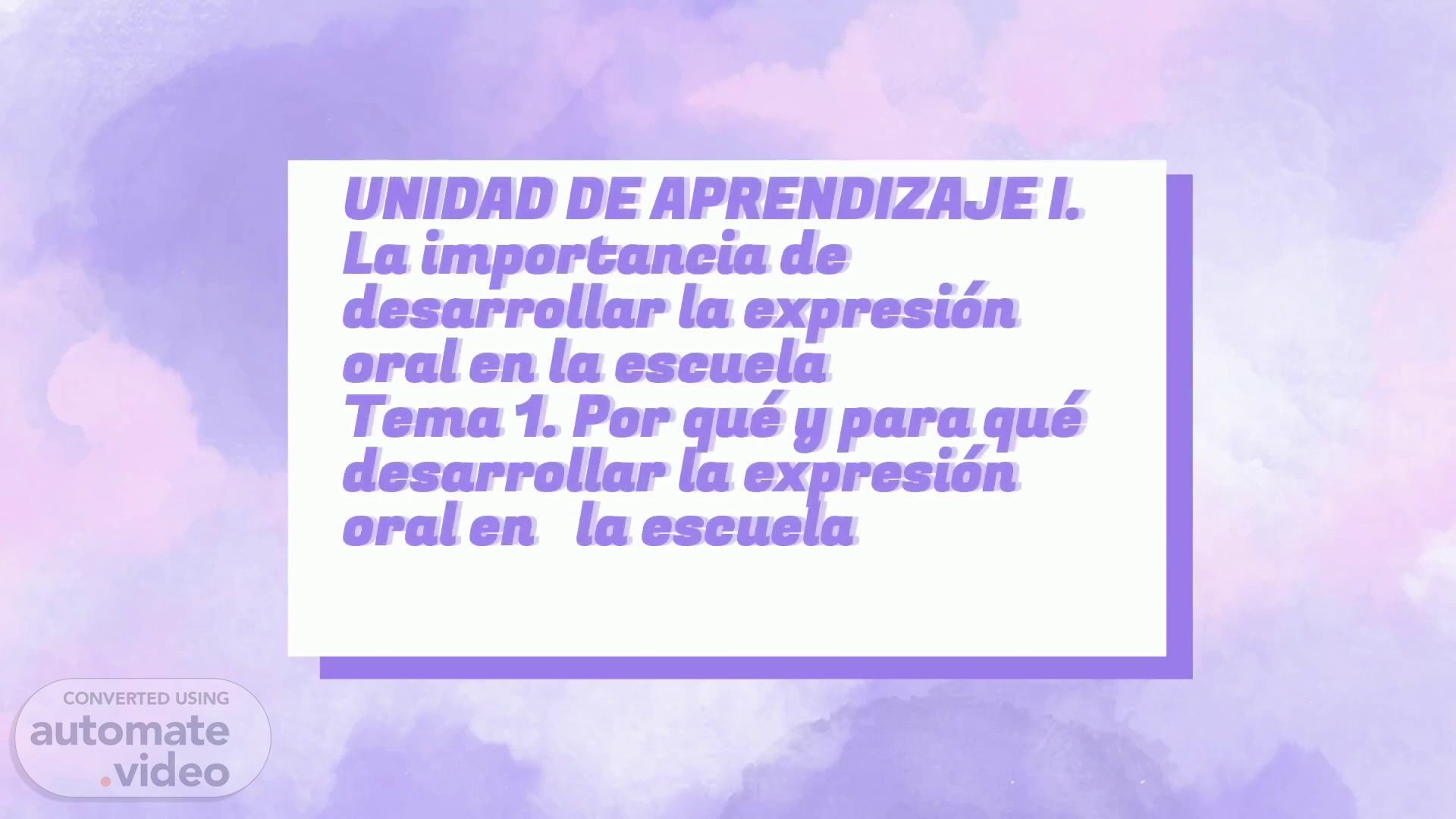 UNIDAD DE APRENDIZAJE I. La importancia de desarrollar la expresión oral en la escuela Tema 1. Por qué y para qué desarrollar la expresión oral en la escuela