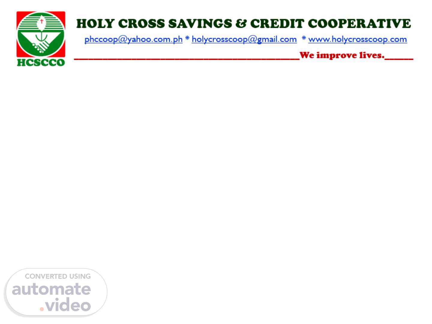 Improving the quality of life of members and communities through: Christian -value formation; Competitive financial services; Programs socially responsive to the needs of members..
