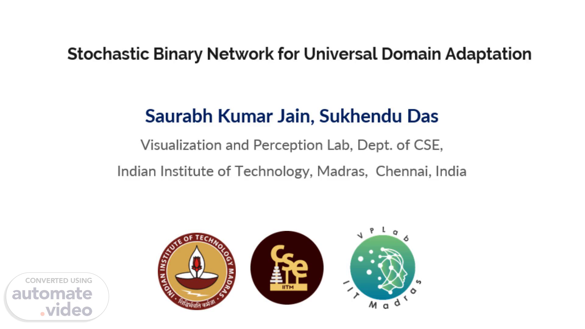 [Audio] Hello, my name is saurabh Kumar Jain, today in this presentation I i will present our work titled as Stochastic binary network for Universal Domain Adaptation..