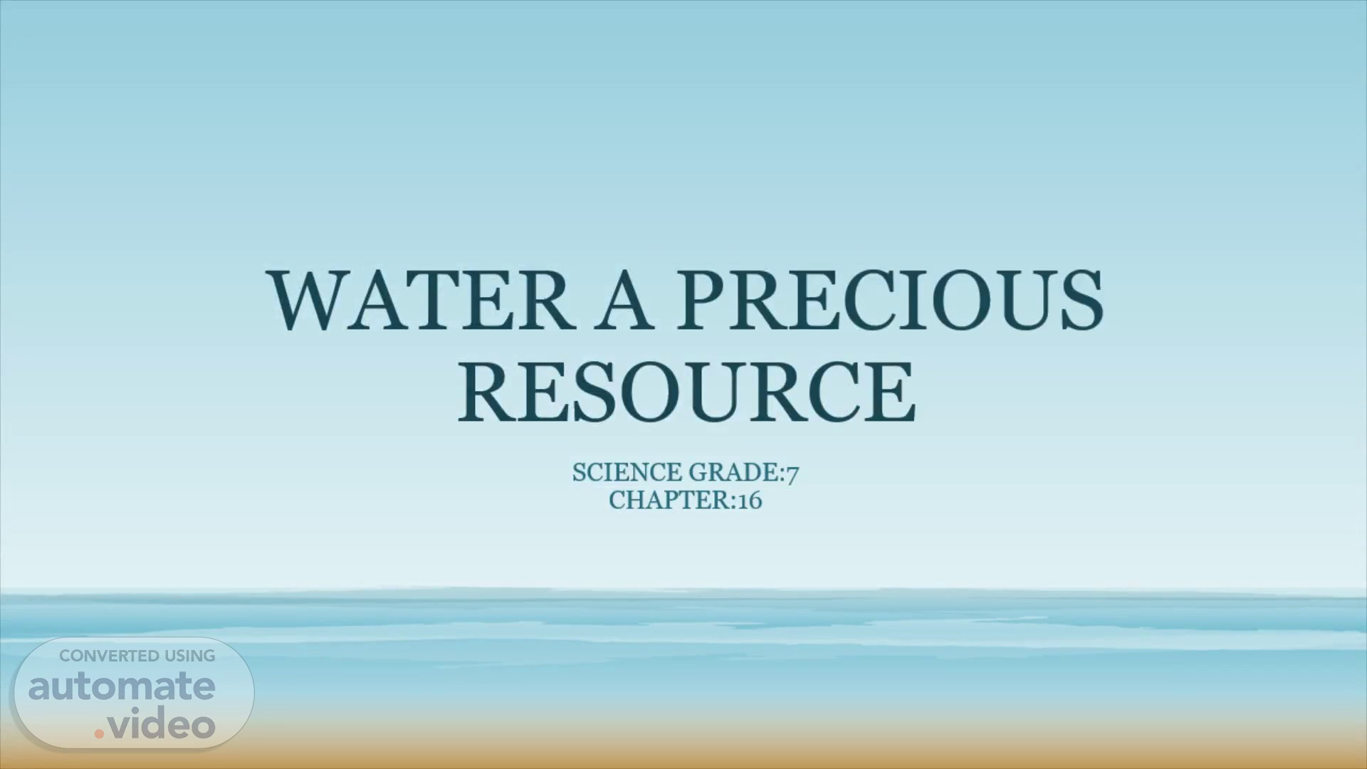WATER A PRECIOUS RESOURCE. Science grade:7 Chapter:16.