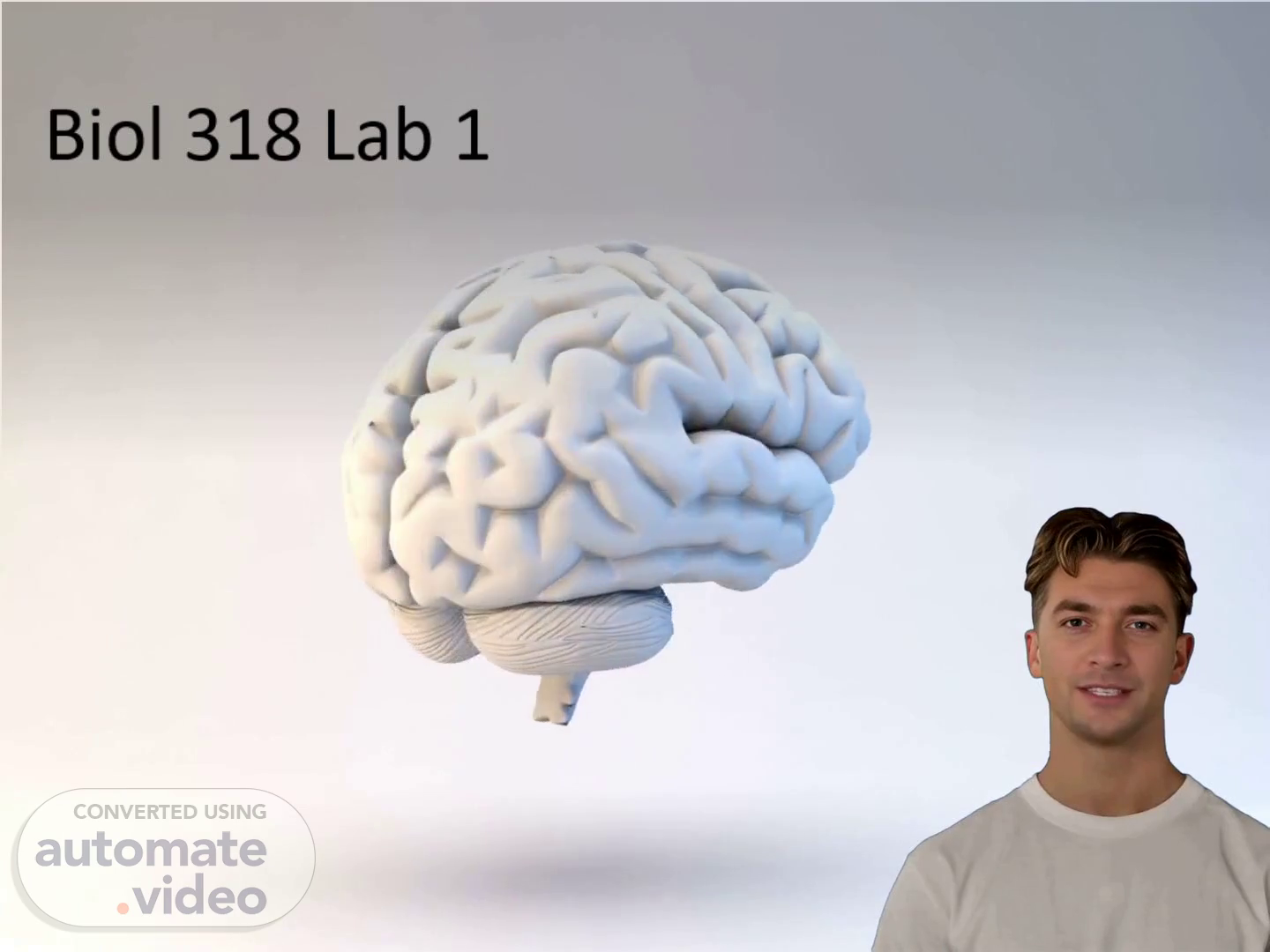 3D Rendering Of The Brain. [Virtual Presenter] This is the first slide of our presentation for Biol 318 Lab 1: Functional Anatomy of the Brain, Cranial Nerves, Spinal Cord and Histology of Nervous Tissue. Our training will focus on the complex structures and functions of the nervous system. We will go over the fundamental anatomy of the brain, cranial nerves, spinal cord, and the histology of nervous tissue. Without delay, let us explore the intriguing realm of the nervous system..