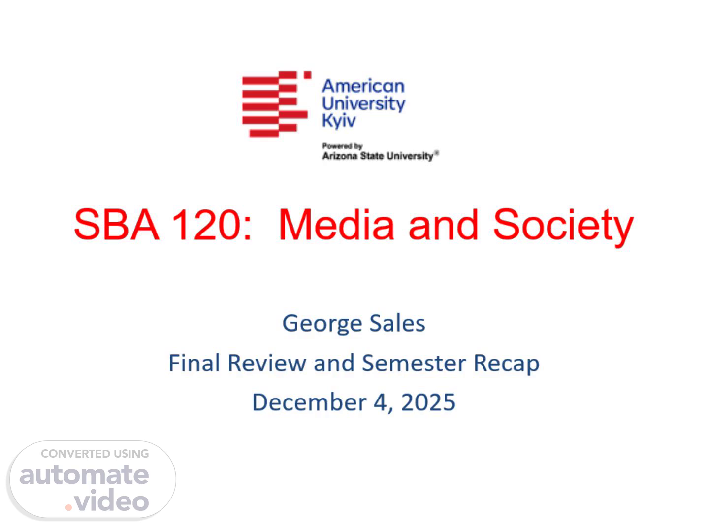 [Virtual Presenter] Welcome to our final lecture and review for Media and Society! In this lecture, we will review all of the chapters that we’ve studied, and I’ve bulleted the most important lessons to remember. Examples are provided, and that supplemental videos may also be included in the final exam. Let’s start….
