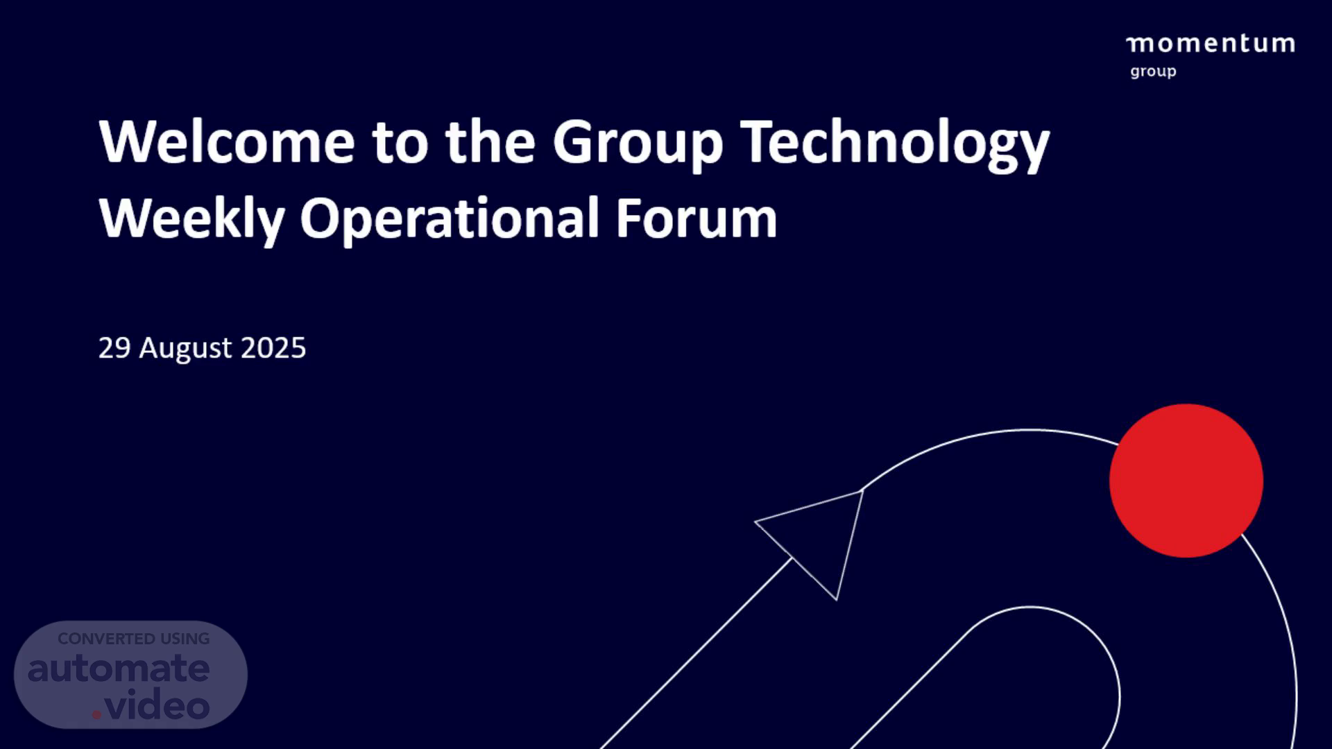 [Audio] This slide covers: Welcome to the Group Technology Weekly Operational Forum 29 August 2025. Please review the details on screen..