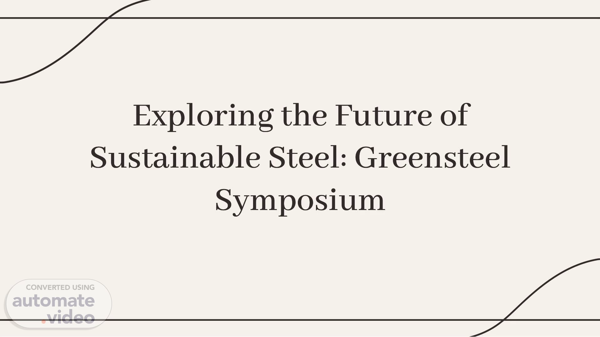 Exploring the Future of Sustainable Steel: Greensteel Symposium Exploring the Future of Sustainable Steel: Greensteel Symposium.