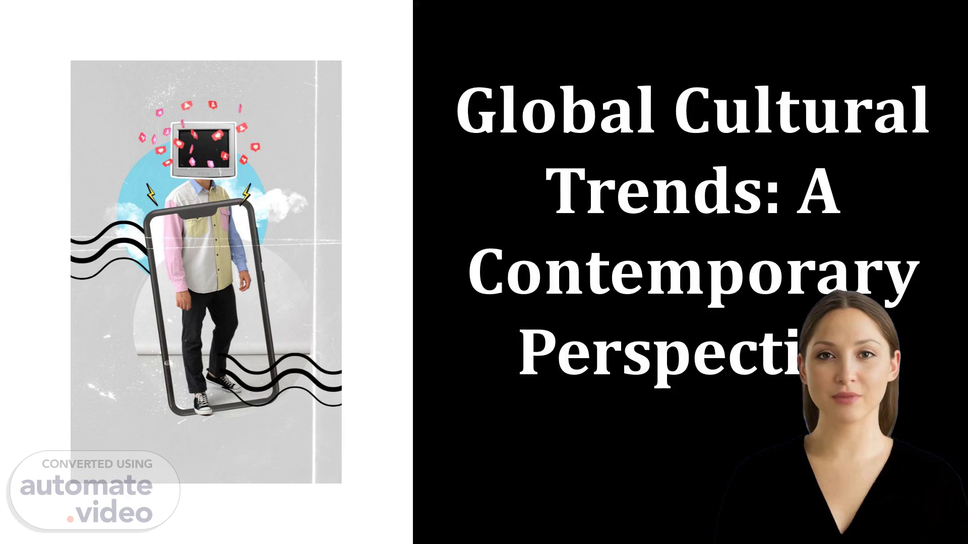 [Virtual Presenter] Good morning everyone and welcome to our presentation on Global Cultural Trends: A Contemporary Perspective. Today we will be discussing the cultural trends in the world today and how they have been affected by technology globalization diversity and consumer behavior. We hope by the end of the presentation you will have a better understanding of the cultural trends today. Let's get started..