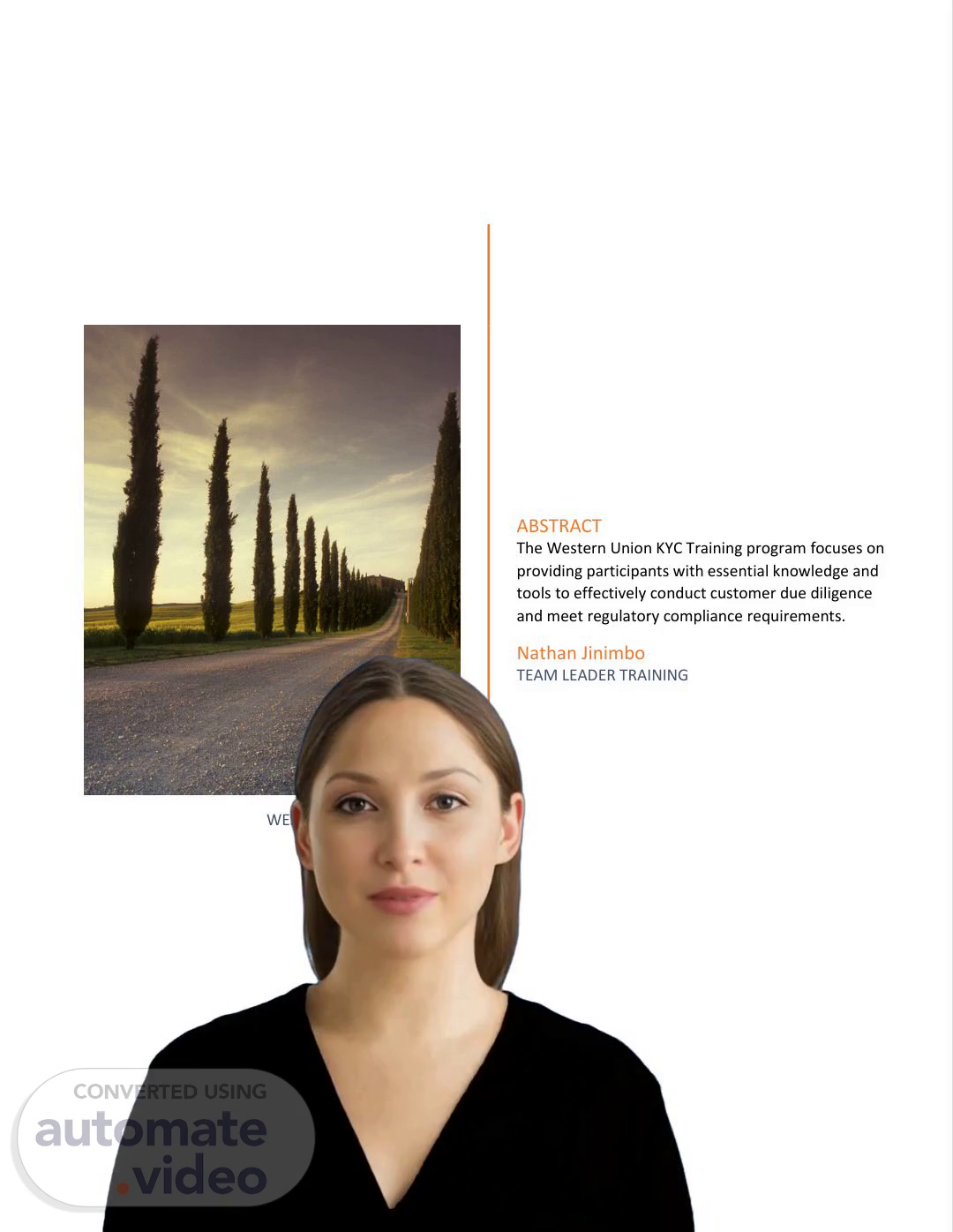 [Virtual Presenter] The Western Union KYC Training program equips participants with the knowledge and tools necessary to conduct customer due diligence and abide by regulatory compliance requirements. Our comprehensive program covers customer onboarding identity management risk assessment and more. Our aim is to ensure compliance with anti-money laundering and know-your-customer regulations. We offer guidance on how to keep up with changing laws and regulations as well. With the Western Union KYC Training program you will have the necessary understanding and assurance to ensure your customer due diligence practices are in accordance with industry best practices..