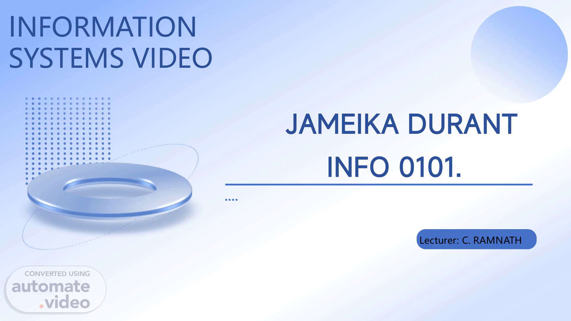 [Audio] INFORMATION SYSTEMS VIDEO JAMEIKA DURANT INFO 0101. Lecturer: C. RAMNATH.