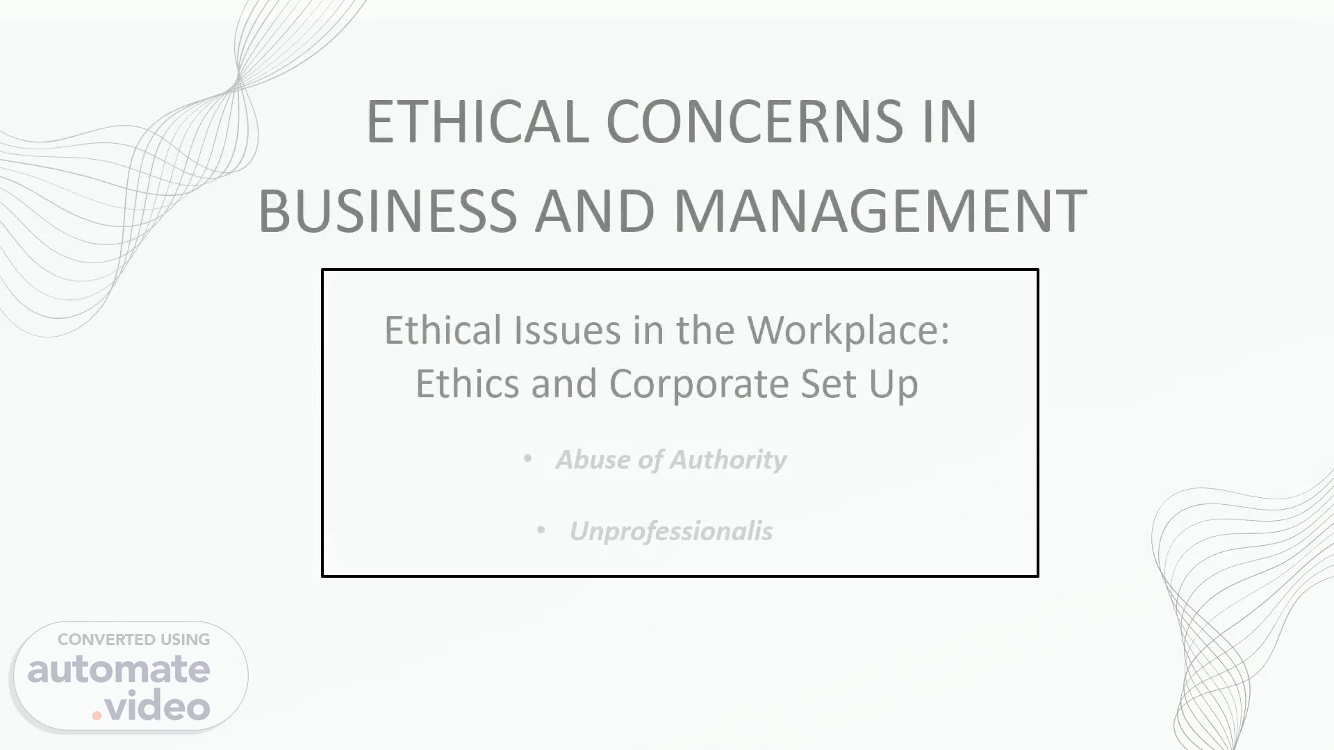 [Virtual Presenter] ETHICAL CONCERNS IN BUSINESS AND MANAGEMENT WITH THE TOPIC ON Ethical Issues in the Workplace: Ethics and Corporate Set Up FOCUSING ON ABUSE OF AUTHORITY AND uNPROFESSIONALISM.