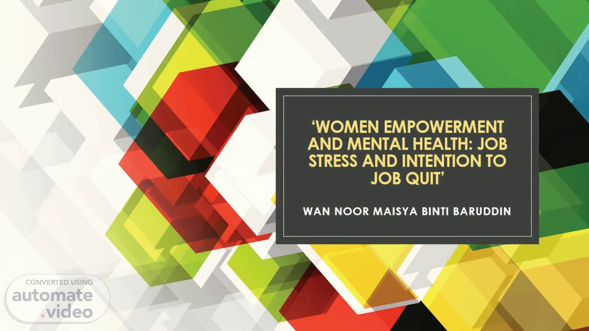 ‘Women Empowerment and Mental Health: Job Stress and Intention to Job Quit’