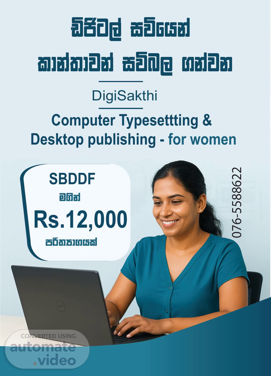 äðg,a iúfhka ldka;djka iún, .kajk DigiSakthi Computer Typesettting & Desktop publishing - for women SBDDF Rs.12,000 u.ska mß;Hd.hla 076-5588622.