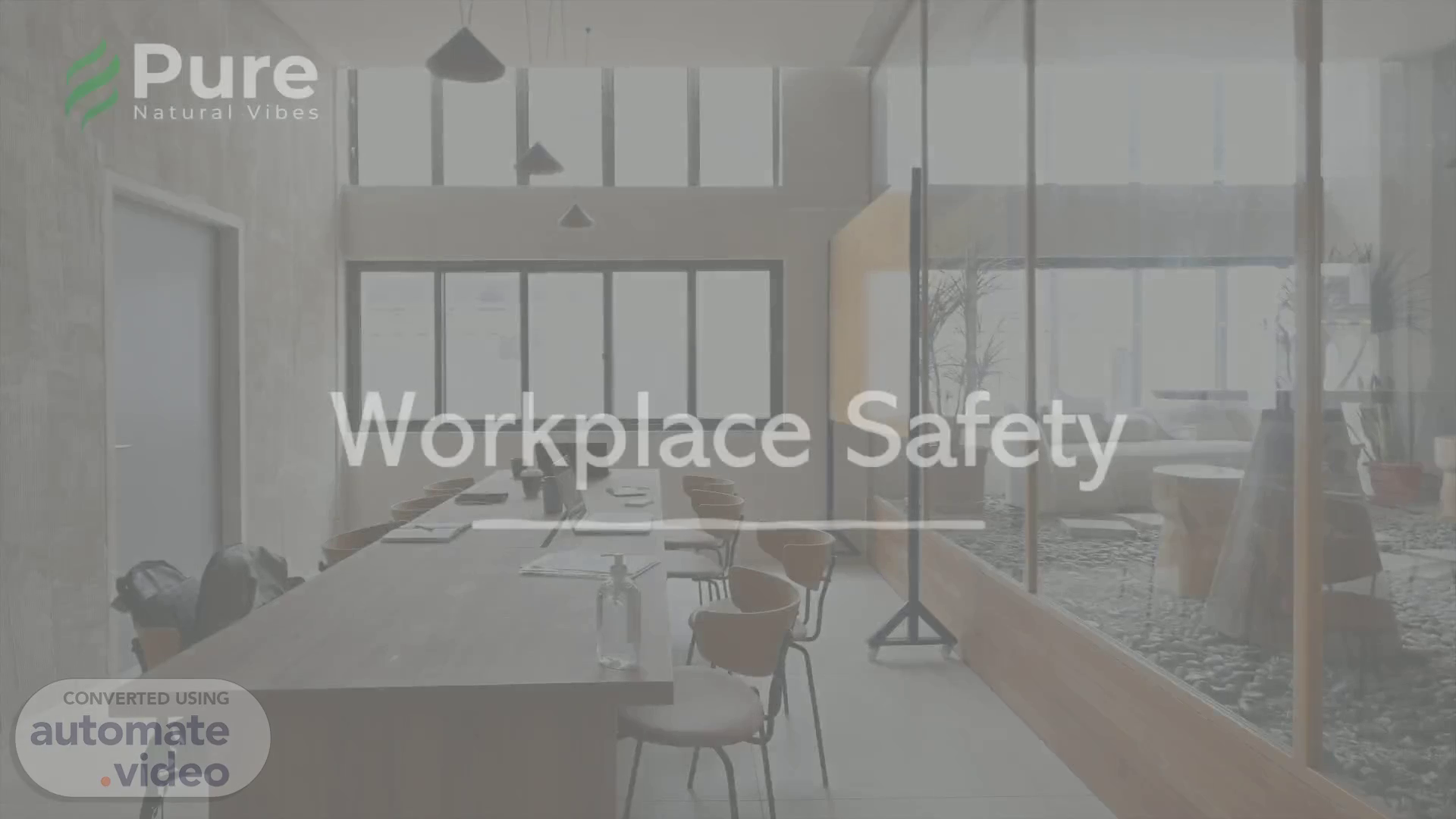 [Audio] Staying Safe. Ensuring safety in the workplace is the topmost priority of our Company. It is mandatory for all employees to adopt safe working methods and report any unsafe conditions, accidents, or injuries to their supervisor. It is important to follow guidelines and procedures to remain compliant with local and national occupational safety authorities. A safe workplace is a happy workplace, as it creates a more comfortable and conducive environment for employees to effectively do their jobs. As part of our safety protocol, Pure Natural Vibes will provide the necessary resources that you need to maintain a safe working environment, but essentially, it is the responsibility of everyone to create and maintain a safe and functional work environment..