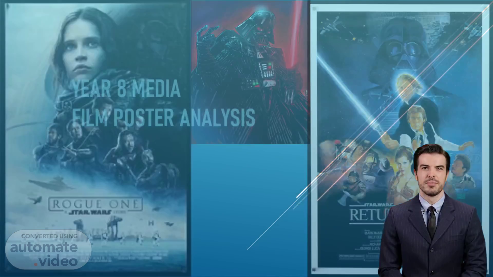 [Virtual Presenter] Welcome everyone to this presentation. We will be exploring the similarities and differences between two different Star Wars movie posters for the original trilogy and Rogue One. We will look at the use of images, film titles, and production blurbs and how they are used to draw attention to the movie. Let's get started!.